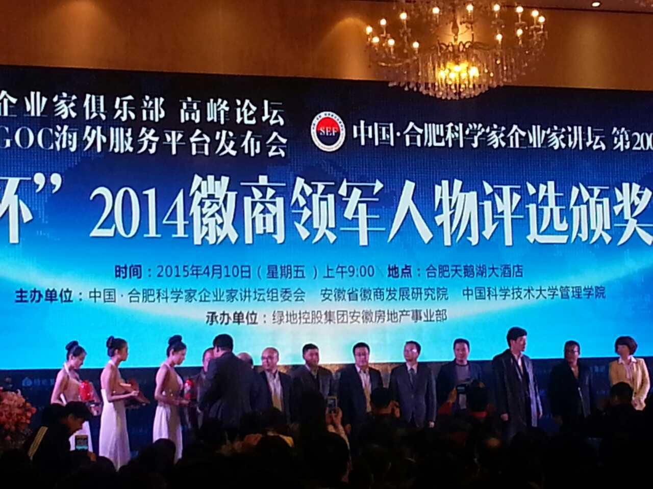 4月10日上午,由安徽省徽商發(fā)展研究院、中國(guó)科學(xué)技術(shù)大學(xué)管理學(xué)院、合肥科學(xué)家企業(yè)家講壇組委會(huì)主辦,綠地控股集團(tuán)承辦的“綠地杯”2014年度徽商領(lǐng)軍人物頒獎(jiǎng)典禮在天鵝湖大酒店盛大舉行,表彰在振興徽商、建設(shè)美好安徽事業(yè)中做出突出貢獻(xiàn)的領(lǐng)軍人物。