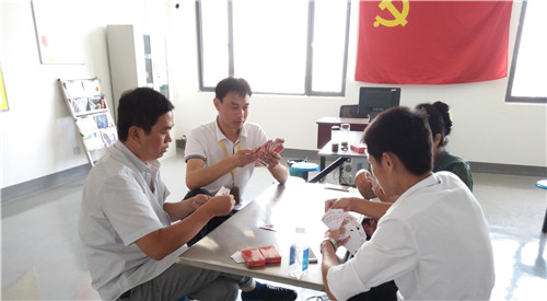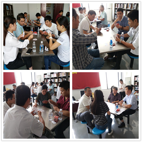接著上場的便是撲克牌比賽,大家斗志斗勇,各顯身手,在比賽進行當中,公司董事長孔德云先生也親自進場觀戰(zhàn),并為廣大員工喝彩助。