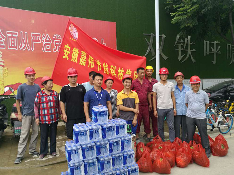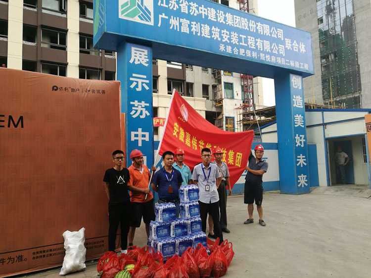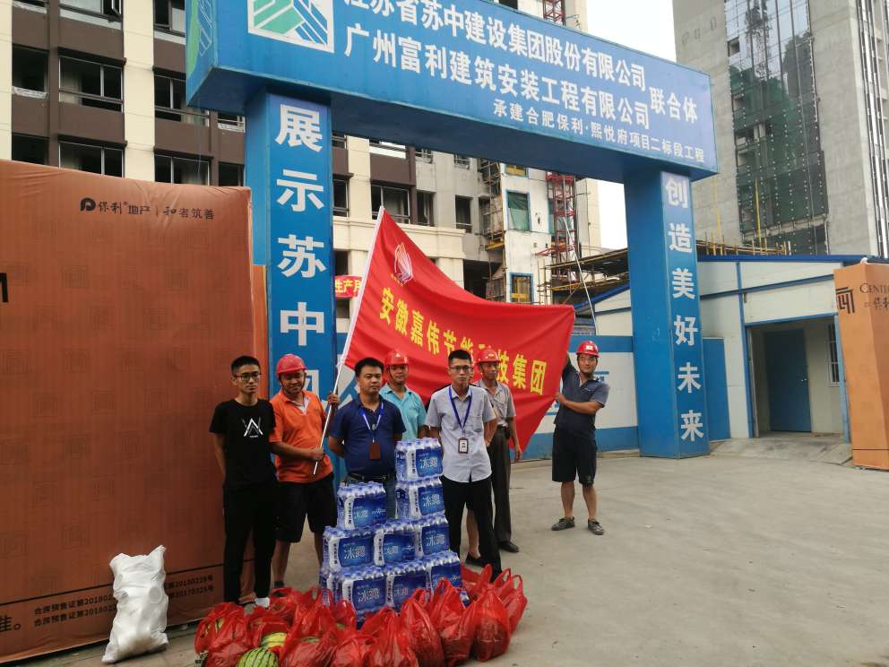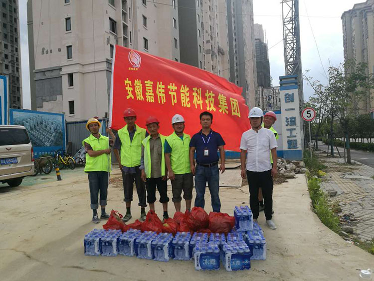 ![]() 自入伏以來,連日高溫酷暑難擋,為做好防暑降溫工作,切實保障員工的生命安全和健康,8月3日,安徽嘉偉節(jié)能科技集團(tuán)行政部工作人員深入一線開展高溫慰問活動,向戰(zhàn)高溫、斗酷暑的員工送上問候和防暑降溫物資。 本次慰問先后到生產(chǎn)車間,保利·西山林語、旭輝·朗香書苑、保利·熙悅府、金隅南七里等四個高溫作業(yè)項目部
