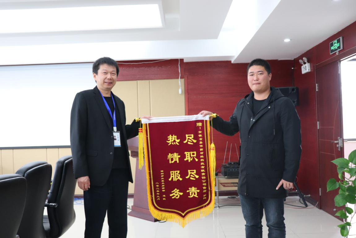 | 優(yōu)質(zhì)服務(wù)暖人心、客戶致謝送錦旗——售后部主管楊陽收到客戶的感謝錦旗 |