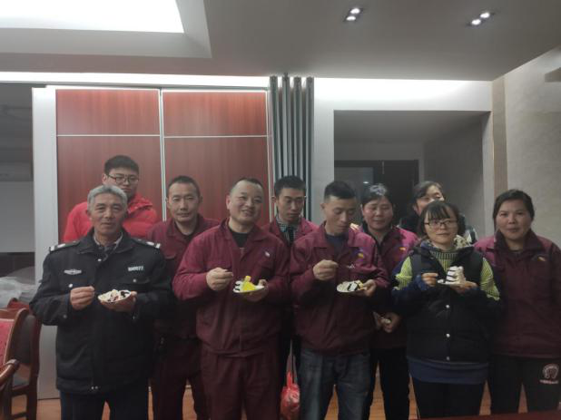 晚上,食堂為“壽星們”準(zhǔn)備了豐盛的晚餐,大家歡聚一堂,臉上洋溢著幸福的笑容。